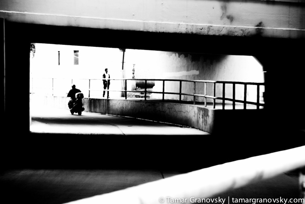 With black and white I tend to extract many shades of grey. As I shift to amplified black and white I am struck by lines, shapes, light, texture, and positive and negative spaces. Blown out black and white begins to move toward abstraction; photos of people or street shots retain a connection to the real world but are distilled down to an essence. By using high contrast the composition becomes minimal in a way that may be impossible with colour. Manipulating black and white in this manner comes to me instinctively. For me there is, in this, a sense of freedom. So, I push out and then pull back in.