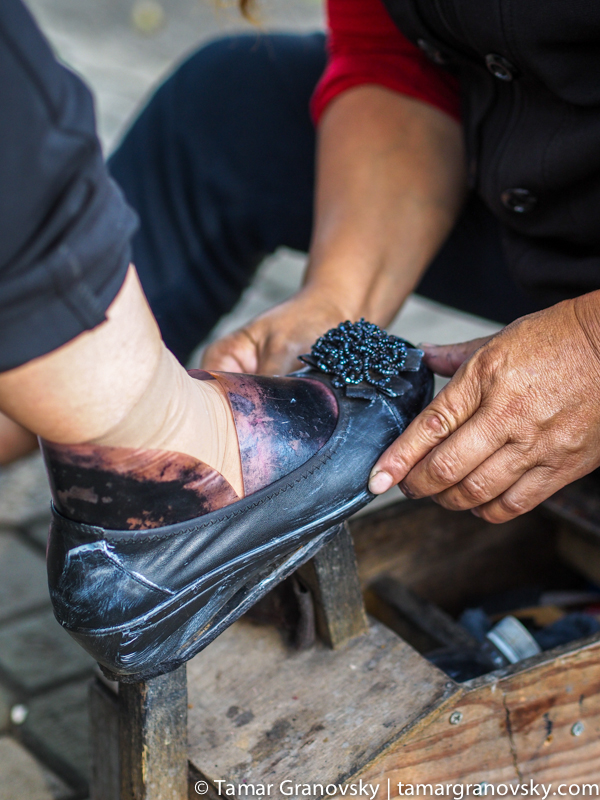 On our first day in Shaxi, Yulan and I saw a few men leading donkeys with rattan baskets filled to the brim strapped to their backs. Women, both young and old, carry their produce and goods on their backs, hunching over to steady themselves and balance the baskets, whose straps stretch across their foreheads and are held onto on either side of their heads.