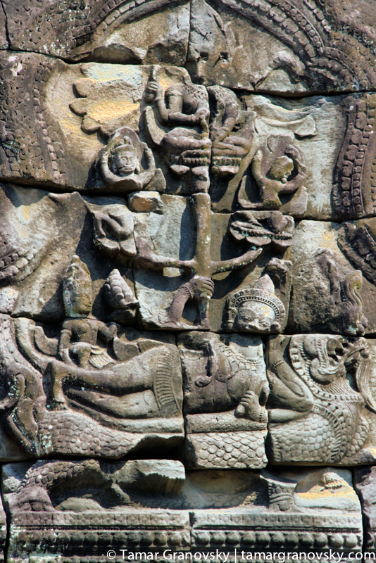 - Phnom Pros and Phnom Sray: The names of these two temples translate to: “Man Hill’” and “Woman Hill.” Each has a pagoda and panoramic views of the countryside. Phnom Pros is filled with monkeys who, unfortunately, eat much of the garbage left by visitors. There is a memorial site for the victims of the Pol Pot regime, at Phnom Sray. A legend was recounted to me : A man and a woman were in a competition to build the tallest mountain at night before sunrise. They were doing this because, as is the Khmer custom, men must ask the parents for the hand in marriage of the woman he loves. Apparently one particular man wanted to challenge this tradition so suggested that he gather a team of men to build a mountain. The woman gathered together to build another. Whichever team built the tallest mountain would win. If the men won, he would not have to ask her parents for their daughter; if he lost, he would. While they worked into the night, the women built a fire with flames high enough for the men to see. Since these flames reached the sky the men thought it was sunrise and put their tools down to rest. While they stopped working the women continued working and won the competition. To this day, a man must still ask a woman’s parents for permission to marry her.
